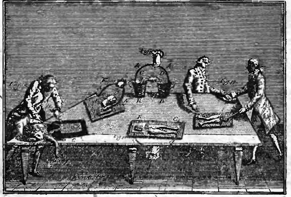 «Препарировав лягушку, я положил ее на угол, где на некотором расстоянии стояла электрическая машина. Случайно один из моих ассистентов дотронулся до нерва лягушки концом скальпеля — и в то же время мускулы лапы содрогнулись, как бы от конвульсии».