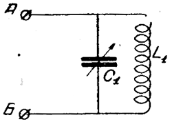 Принципиальная схема фильтра приведена на рис. 1. Как видно, фильтр представляет собой обычный колебательный контур, состоящий из переменного конденсатора С1 и катушки L1. Клеммами А и Б фильтр присоединяется к приемнику по той или иной схеме включения фильтра. Если добавить лампу, реостат, телефонные гнезда и др. мелкие детали, можно собрать одноламповый регенератор. Принципиальная схема этого регенератора приведена на рис. 2. Катушка обратной связи L1 имеет переменную индуктивную связь с катушкой L2 сеточного контура. При помощи перемычки, которая включена в клемму «земля», мы можем получить схему «короткие» или «длинные» волны.