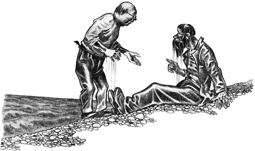 Удрученный своими неприятными мыслями, Эзра нахлобучил старую черную шляпу и предпринял длинную прогулку по берегу моря в надежде, что прохладный морской ветер освежит eгo голову и поможет ему как-нибудь разрешить возникшую перед ним сложную проблему, но сколько он ни бродил, он ничего не мог придумать. Наконец усталый растянулся на скалистом берегу крошечной бухты и крепко заснул под шум прибоя.